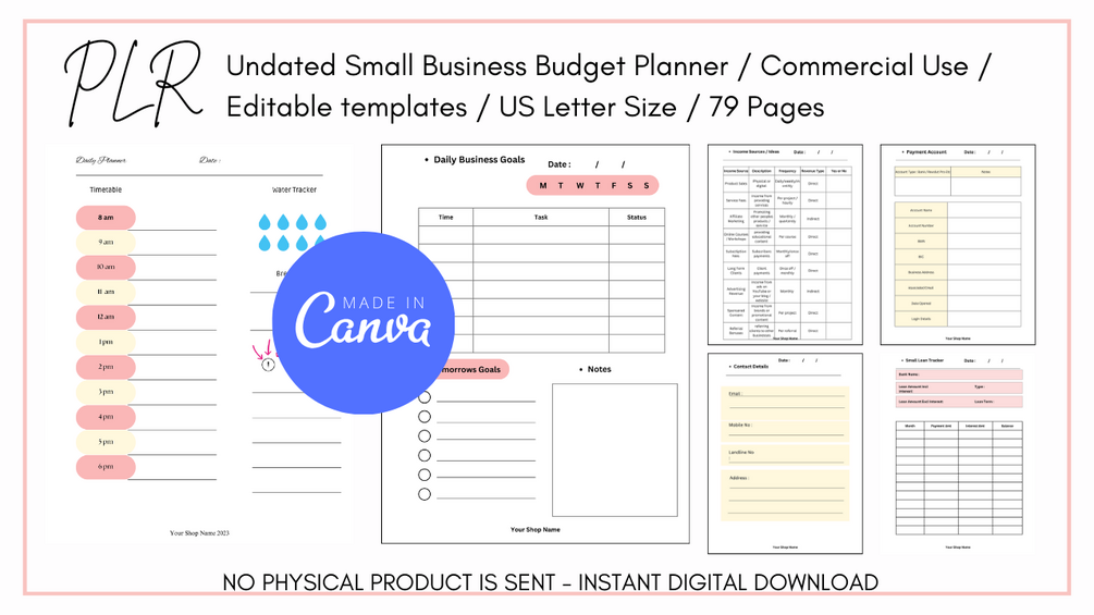 PLR Work From Home Guide Small Business Budget Planner / Editable Templates / Commercial Use / Resell Rights